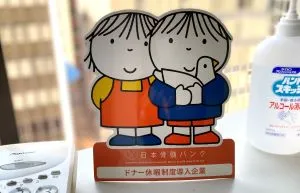 「ドナー休暇制度」を導入している企業・団体さまの受付や応接室に掲出していただくためのPOPを作成しました。ブルーナデザインで、「ドナー休暇制度導入企業」の文字がプリントされています。貴社のCSR活動にぜひご活用ください。